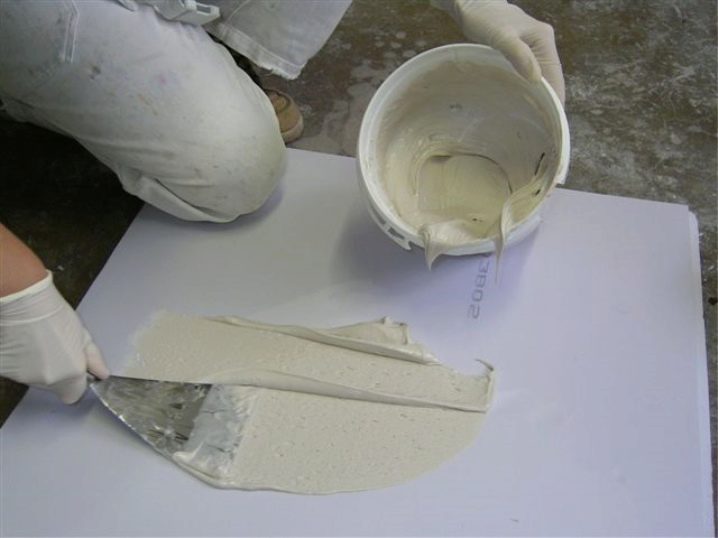 المكونات الرئيسية هي الأسمنت والراتنجات والألياف الصناعية. إنها تركيبة عالمية ، لأنها مناسبة لأي سطح.