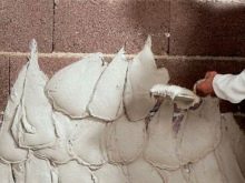 بعد خلط الخليط جيدًا بالماء حتى يتم تكوين تناسق متجانس ، يمكنك البدء في إنهاء العمل. يمكن استخدام المحلول الجاهز في غضون ساعة ، وبعد ذلك يتماسك ويصبح غير قابل للاستخدام..