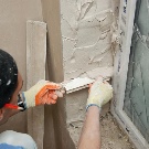 عند القيام بالعمل في الهواء الطلق ، يلزم وجود ظروف جوية معينة. لا تضع المعجون على الجدران الخارجية عند هطول الأمطار أو عند التعرض لأشعة الشمس المباشرة.. يتم تنعيم سطح المعجون لإعطاء نعومة مثالية للطلاء باستخدام عوامة إسفنجية..