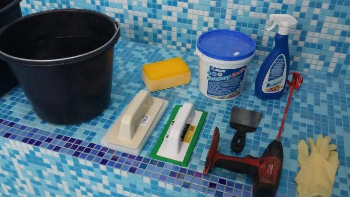 - ملعقة مطاطية ضيقة (في الواقع ، تملأ الفراغ بين البلاط) ؛