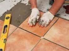 بعد ذلك ، تتم إزالة الغراء تمامًا على طول محيط التجويف بالكامل ويتم وضع بلاطة جديدة في هذا المكان ، باستخدام الأجهزة المذكورة أعلاه..