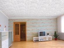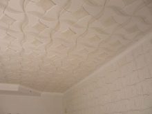 من خلال الانتهاء بهذه الطريقة ، يمكن الحصول على أنماط مثيرة للاهتمام على سطح السقف ، ويتم توزيعها بالتساوي على القاعدة بأكملها ، ولكن غالبًا ما تشكل طبقات ، لذلك يوصى بشراء بلاط سلس خاص لإنهاء مثالي. تتميز الألواح بظلالها البيضاء الثلجية وتبدو جميلة في الغرف الفسيحة..