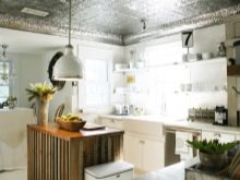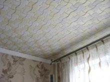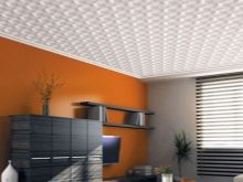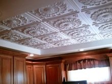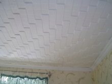 أرخص وأسهل طريقة لإنهاء السقف هي تركيب بلاط الرغوة. من حيث التكلفة ، يمكن أن تكون مثل هذه الأعمال مساوية للتبييض التقليدي ، ولكن على عكس ذلك ، فإن التصميم أكثر فاعلية ، لأنه يفتح فرصًا هائلة للأفكار الإبداعية. تحتوي هذه المادة على نسيج ولون ثريين ، وتقلد الأسطح المختلفة ومزينة بأنماط إغاثة جميلة. اعتمادًا على أسلوب الزخرفة ، يمكنك اختيار البلاط الأبيض الكلاسيكي أو الألواح الملونة بالجص.