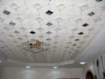 بالنسبة للغرف الفسيحة ، يُنصح باختيار بلاط رغوي مجعد.. ستقوم بإنشاء تركيبة أصلية ، وستؤكد الأنماط الجميلة بشكل إيجابي على الموضوع العام للأسلوب. تبدو هذه الألواح رائعة في غرف المعيشة والقاعات ، والسقف الأبيض مثالي لغرف النوم.. لفصل السقف عن الجدران بطريقة أصلية ، تحتاج إلى لصق الألواح بشكل إضافي. أيضًا ، لن تتأذى الإضاءة الساطعة على شكل ثريا كبيرة في الغرفة..