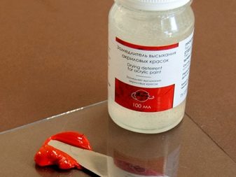 - عند خلط دهانات الأكريليك والمثبطات بنسبة 1: 1 ، ستحصل على خليط من قوام القشدة الحامضة السائلة. لا يمكن استخدام مثل هذا التكوين مع بعض التقنيات الفنية. سيحدث التجفيف الكامل للطبقة مع نسبة التركيب هذه خلال ساعتين.