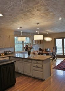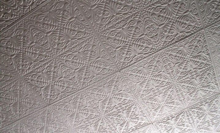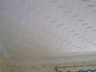 - إذا تم التخطيط لتزيين السقف المعلق ، فإن الأمر يستحق شراء بلاط مع نقش ؛