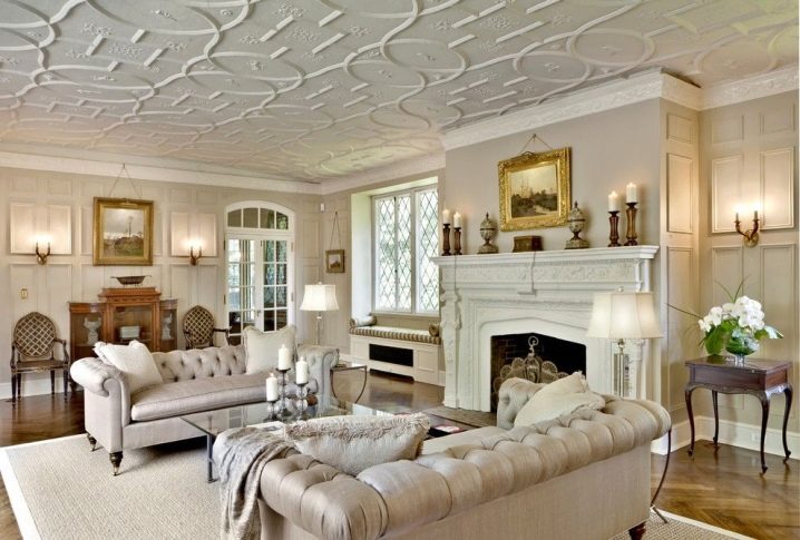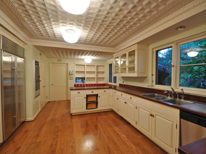 - يمكن أن تكون المادة ذات أشكال مختلفة ، مما يسمح لك باختيار خيارات مختلفة لإنهاء السقف ، مع مراعاة النمط المختار والأنواع غير القياسية لمنطقة السقف ؛