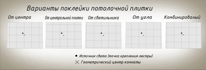 نظرًا للوزن الخفيف أثناء أعمال التشطيب ، يتم حفظ الغراء ، والذي يتم تطبيقه بشكل نقطي. في الوقت نفسه ، ليست هناك حاجة لتطبيق إضافي للمادة اللاصقة على سطح السقف: عادةً ما تحافظ هذه التركيبات على المادة جيدًا ، وفقًا لتقنية التشطيب..