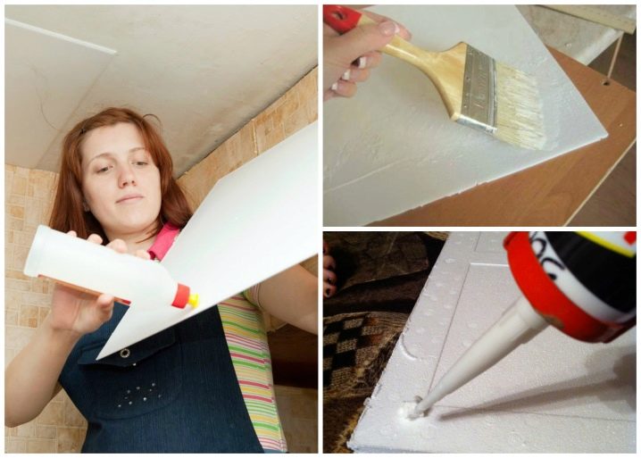 بالنسبة للبلاط الرغوي ، يمكنك استخدام لاصق بلاط السقف المصطكي أو الخاص. في هذه الحالة ، يجب مراعاة تحذير واحد: يجب أن يكون لون الغراء أبيض للغاية ، وإلا يمكن رؤيته من خلال ألواح رقيقة. باستخدام مثل هذا التكوين ، سيكون من الممكن تغطية اللحامات إذا كانت الفجوات بين البلاط ملحوظة بعد اللصق.