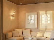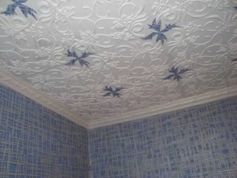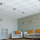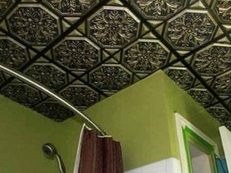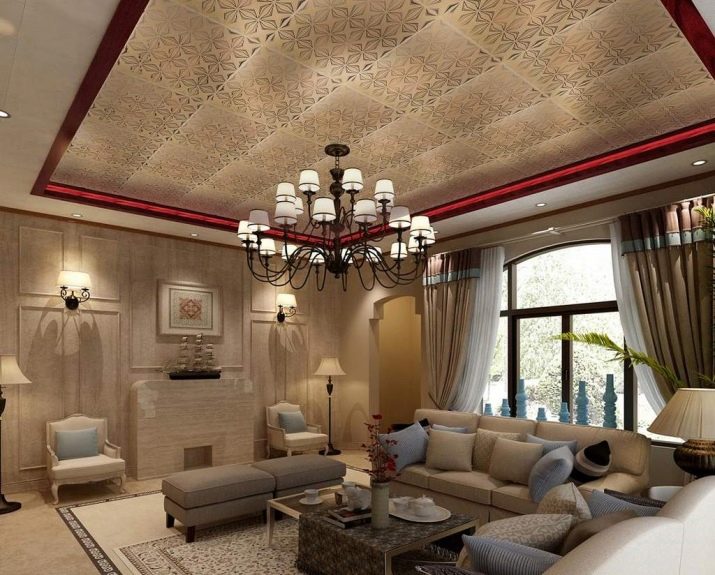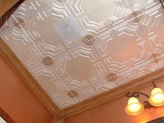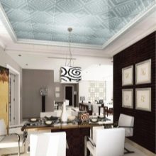 - إذا تم التخطيط لتزيين السقف المعلق ، فإن الأمر يستحق شراء بلاط مع نقش ؛