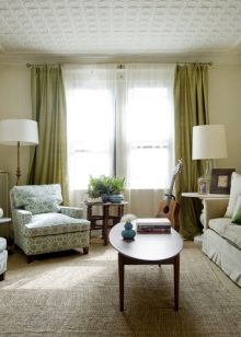 - يمكن أن تكون المادة ذات أشكال مختلفة ، مما يسمح لك باختيار خيارات مختلفة لإنهاء السقف ، مع مراعاة النمط المختار والأنواع غير القياسية لمنطقة السقف ؛