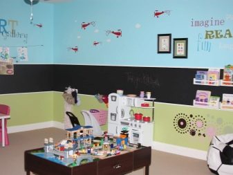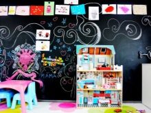- فكرة استخدام تشطيب مماثل في غرف الأطفال ممتاز. يتم مسح الرسومات المصنوعة على الأرض بسهولة. هذا مناسب بشكل خاص للعائلات التي لديها أطفال صغار. لن يتغير لون الجدران بمرور الوقت. بالإضافة إلى ذلك ، من الملائم وضع الحرف اليدوية والملاحظات التي تحتوي على معلومات مهمة عنها ، والتي ستكون دائمًا في الأفق.