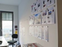 - في أماكن الترفيه من الملائم أيضًا وضع المعلومات والقوائم والمراجعات الضرورية ليس على أكشاك المعلومات ، ولكن على سطح الجدار. الأمر نفسه ينطبق على غرف الاجتماعات عند استخدام عدد كبير من المشاريع والجداول في العمل..