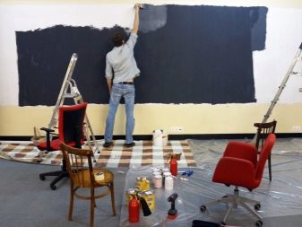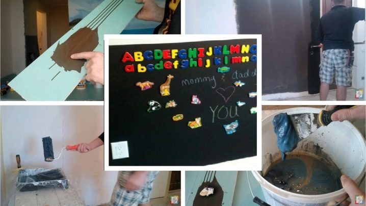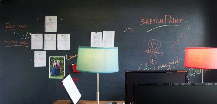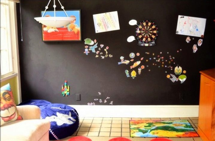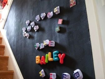 يمكن وضع العناصر على الأرض دون استخدام أدوات تثبيت إضافية. هذا يجعل من الممكن تنويع المناطق الداخلية. أحد خيارات استخدام هذا الطلاء هو إنشاء سطح لطلاء الأردواز. في هذه الحالة ، يمكنك إما تثبيت المغناطيس عليه ، أو عمل مجموعة متنوعة من الرسومات..