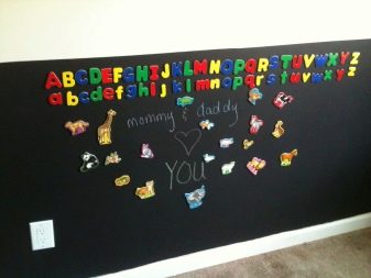 يوفر الطلاء المغناطيسي حلاً ممتازًا. بالإضافة إلى إمكانية استخدامه في أي غرفة على الإطلاق. بالإضافة إلى ذلك ، فإن الانتشار غير الواسع لهذا النوع من التشطيبات لن يسمح فقط بإرضاء أفراد الأسرة الأصغر سنًا ، ولكن أيضًا لمفاجأة الضيوف بالخصائص غير العادية للجدران..