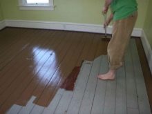 بعد تجريد القاعدة الخشبية من طبقة التشطيب القديمة وإزالة الأوساخ ، يتم وضع طبقة صغيرة من الطلاء. بعد ذلك ، عليك الانتظار حتى يجف الطلاء تمامًا. ثم يتم صقل السطح ، ويتم وضع طبقة ثانية من الخليط عليه ، والتي بعد التجفيف تحتاج أيضًا إلى صنفرتها.
