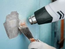 - في الظروف الصناعية ، لأداء مثل هذه المهام ، عادة ما يتم استخدام مجفف شعر المبنى ، والذي يعطي درجة حرارة عالية إلى حد ما لتقشير جميع أنواع الدهانات تقريبًا ؛