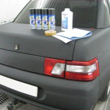 يمكن تطبيق دهان رش السيارة على طبقة الطلاء القديمة. قبل ذلك ، تحتاج فقط إلى تحضير السطح بعناية عن طريق تنظيفه وإزالة الشحوم منه. يحمي الفيلم المرن السيارة من الخدوش والعيوب الأخرى التي يمكن أن تتكون من أغصان الأشجار أو الأحجار الصغيرة أو هطول الأمطار. نتيجة لعوامل خارجية ، يمكن أن يتلف الطلاء المطاطي ، ولكن يمكن بسهولة وضع طبقة جديدة من الطلاء على المنطقة المتضررة..