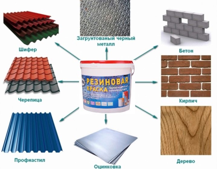 نظرًا لمقاومتها الممتازة للرطوبة ، يمكن استخدام مواد الطلاء المطاطية للزينة الخارجية ، وكذلك في الغرف ذات المستويات العالية من الرطوبة (على سبيل المثال ، للحمام).