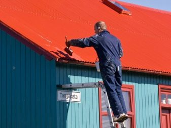 بالنسبة للسقف المعدني ، قبل الطلاء ، من الضروري تنفيذ سلسلة من الإجراءات للتنظيف الشامل من الصدأ وإزالة الشحوم عن السطح. قبل القيام بأعمال الإصلاح ، يجب صقل الشجرة ومعالجتها بمطهر.