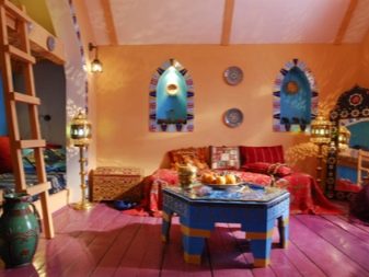 - داخلي بأسلوب مغربي يمكنك اختيار مواد متعددة الطبقات وألوان زاهية إلى حد ما.
