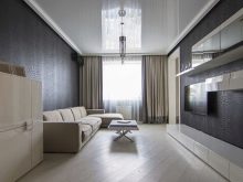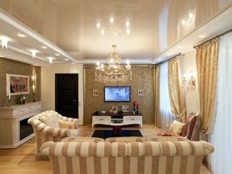 على سبيل المثال ، تعتبر التصميمات اللامعة والمرايا مثالية للغرفة ذات الأسقف المنخفضة ، لأنها تجعل الغرفة فسيحة بصريًا. يمكن استخدام كل من الخيارات العادية والمزخرفة..