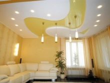 إذا كان السقف الأساسي به مخالفات أو أراد العميل ترتيبه بطريقة غير معتادة ، فعليك الانتباه إلى الخيارات متعددة المستويات. تتميز بتعقيد التصميم ، مع عدم تقييد رحلة خيال المصمم. هذه التصميمات مثالية للغرف ذات الأسقف العالية..