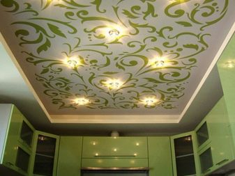 - تبدو الأسقف المعلقة ذات التصميمات الزهرية حساسة وأنيقة. تسمح لك الأزهار الفاخرة بإضفاء الرومانسية والراحة المنزلية إلى الداخل. لإضفاء السطوع والبراعة على الطباعة ، يجب عليك اختيار الإضاءة المناسبة..