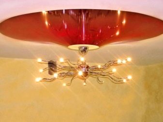 - ينصح الخبراء بعدم شراء الثريات الأفقية المسطحة للأسقف المتوترة ، خاصة مع المصابيح المتوهجة والهالوجين. يمكن أن تذوب حرارتها القماش..