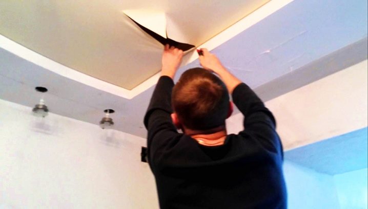 مع مثل هذا التأثير ، يمكن أن يتضرر السقف الممتد بالكامل بشكل لا يمكن إصلاحه والمخرج الوحيد هو تغييره إلى سقف جديد. لذلك ، إذا لم تكن واثقًا من قدراتك ، فمن الأفضل عدم المخاطرة ، ولكن طلب المساعدة من المتخصصين.