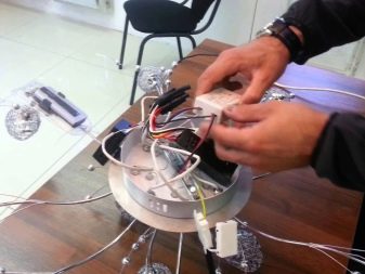- إذا كانت الثريا معلقة على خطاف ، فبعد إزالة الغطاء الواقي ، يجب أن تصل إليها بيدك وتلتقط هذا الحامل. بعد إزالة الثريا من الخطاف ، من الضروري العمل مع الأسلاك وفصلها.