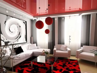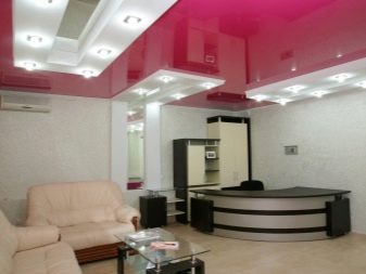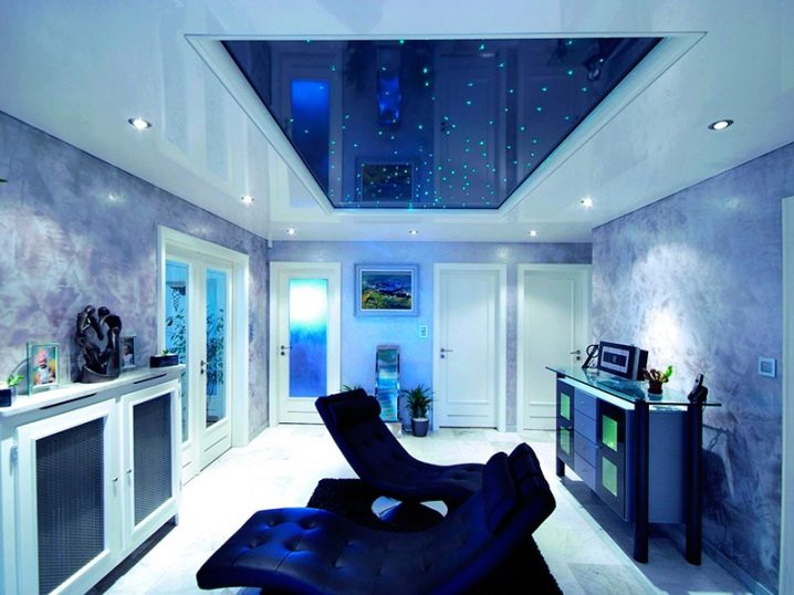 الأسقف اللامعة لها تأثير متأصل في زيادة المساحة. بسبب نسيج السطح ، فإنها تجعل الغرفة التي تم تركيبها فيها أكبر. هذا التأثير مناسب بشكل خاص في الاتجاهات الحديثة في التصميم الداخلي ، حيث من المهم إظهار لمعان وأناقة أي مادة.. إذا كانت هناك عناصر ذات لمعان في التركيبة الداخلية ، فسيكون غطاء السقف هذا مناسبًا تمامًا.