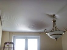 - الأسقف المصنوعة من القماش لا تحمل الرطوبة جيدًا. تعتبر “قابلة للتنفس” ، أي أنها تسمح للهواء بالمرور بسبب المسامات الدقيقة المتاحة. ومع ذلك ، فإن هذه المسامات الدقيقة نفسها غير قادرة على التعامل مع تدفق المياه في حالة الفيضان. لذلك ، إذا كنت تعيش في الطابق العلوي ، وكان سقفك يتسرب ، فهذا الخيار ليس لك. في هذه الحالة ، يجدر اختيار خيار قماش الفيلم..