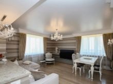- لا يمكن جعل الأسقف المصنوعة من القماش لامعة, وهناك عدد أقل من حلول الألوان الجاهزة في هذا الإصدار من الشركة. يمكنك طلب تصميم فردي ، لكن هذا سيزيد من التكلفة النهائية للمنتج.