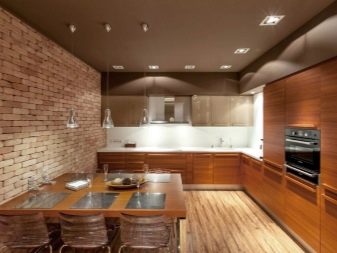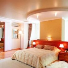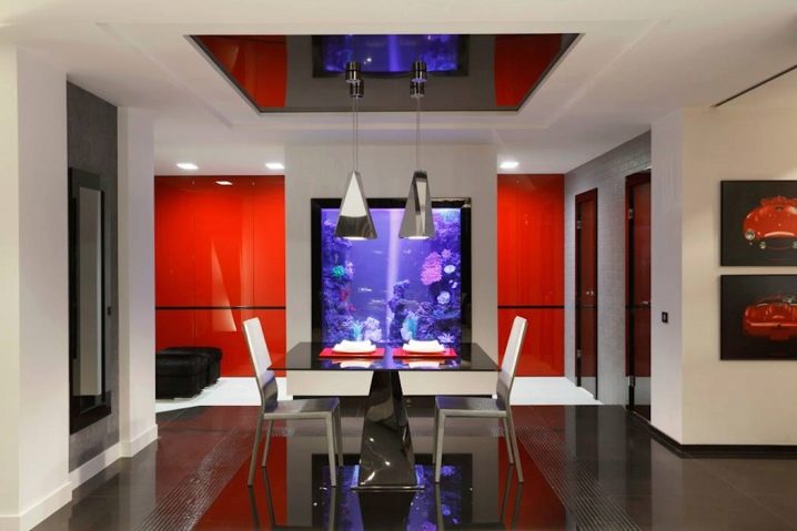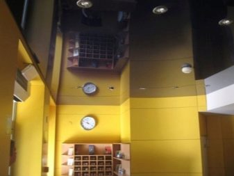 حل التصميم الأكثر شيوعًا هو مزيج من الأسقف ذات اللون البني اللامع والمرايا المشطوفة., التي تقع على طول الجدار.