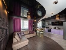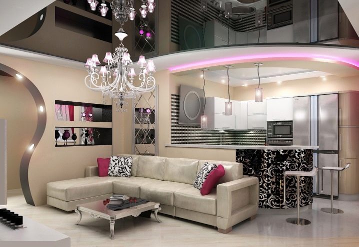 السقف الممتد هو استمرار للتصميم ، لذلك يجب أن يتداخل لونه بالتأكيد مع باقي العناصر الداخلية ، ويجب أن يتوافق اللون مع لوحة الألوان العامة. في حالة الإصلاحات الجزئية وتصميم السقف فقط ، من السهل الاختيار لصالح لون أو آخر. تحتاج فقط إلى البناء على الأثاث الموجود والعناصر الزخرفية وخصائص الألوان في الغرفة.