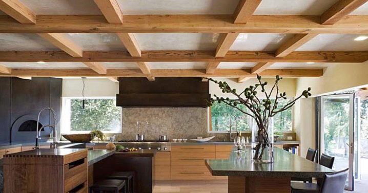 إن استخدام عوارض خشبية كبيرة ، ذات تشطيب خشن وظل طبيعي ، ستعطي “طبيعية” أكبر لمثل هذا السقف..