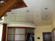 في الشقق الحديثة ، أصبح هذا النوع من زخرفة السقف مألوفًا وشائعًا منذ فترة طويلة. يخفي قماش التمدد جميع عيوب السقف ومخالفاته تمامًا.