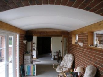 - غطاء السقف الزخرفي يحيد المعنى الكامل للعيش في منزل خشبي. على الرغم من أن هذا يمكن أن يقال عن جميع مواد التشطيب الحديثة تقريبًا.