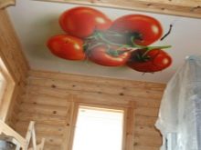 - في الوقت الحاضر ، يمكنك غالبًا العثور على سقوف متوترة مزينة. بفضل استخدام أحدث التقنيات ، تم تزيين السقف بطباعة الصور. هذا يوسع إلى حد كبير إمكانيات التصميم..