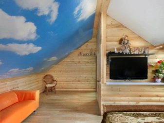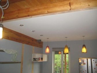 - غطاء السقف الزخرفي يحيد المعنى الكامل للعيش في منزل خشبي. على الرغم من أن هذا يمكن أن يقال عن جميع مواد التشطيب الحديثة تقريبًا.