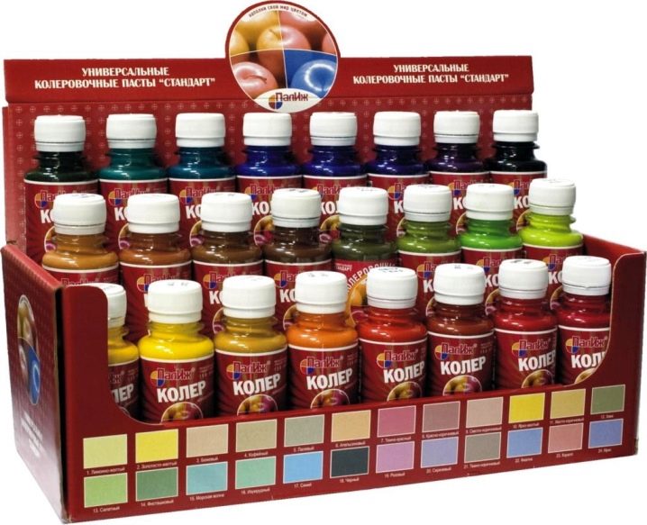 التدرج اللوني للدهانات واسع. هناك فرصة لجعل الظل بنفسك ؛ لذلك ، يتم استخدام الألوان. تتداخل مع اللون الأبيض وتخلق الظل المطلوب. كوهلر دهان مركّز. يمكن أن تكون سميكة وسائلة.