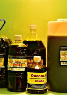 - في زيوت التجفيف المركبة ، تكون التركيبة هي نفسها الموجودة في oxol ، فقط بنسب مختلفة. يمثل المذيب ما يصل إلى 30٪ من الخليط الكلي ، و 70٪ عبارة عن زيت نباتي.