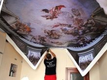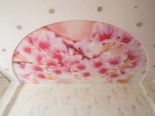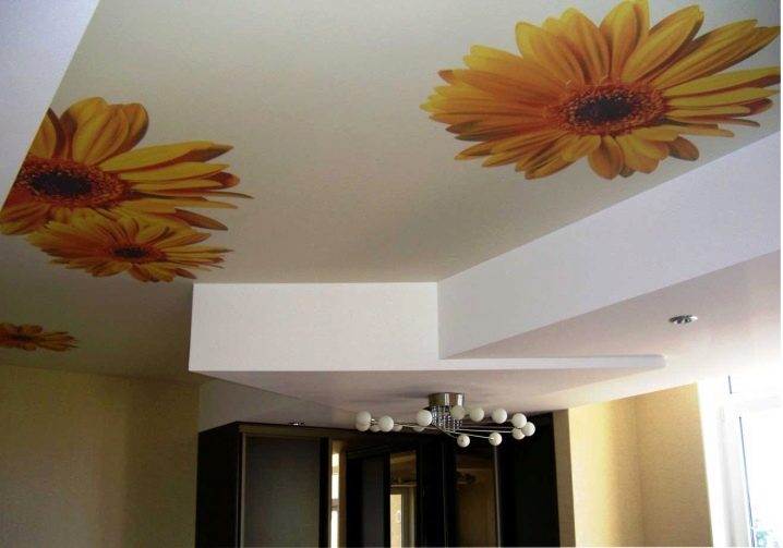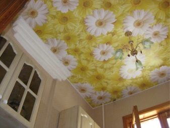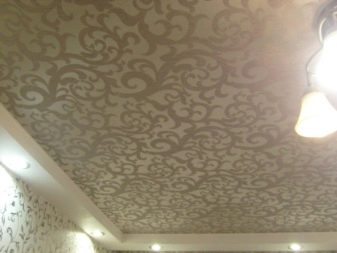 غالبًا ما يتم تثبيت الرقع الزخرفية في الأماكن التي ينكسر فيها فيلم PVC. يمكن لصق التطبيقات المتباينة بسهولة باستخدام مادة مانعة للتسرب. اضغط على الرقعة على القماش لفترة من الوقت. قم بإزالة المادة اللاصقة الزائدة بقطعة قماش جافة. بعد هذا التجديد الإبداعي ، سيبدو السقف اللامع أكثر إثارة للاهتمام. تسمى العناصر الرسومية في لغة التصميم طبعات الصور.. السقوف المطبوعة باهظة الثمن.