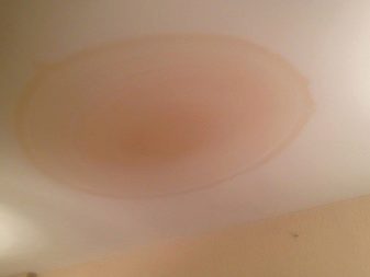 يحدث هذا العيب بعد الفيضانات. غالبًا ما يحدث في الحمام أو المطبخ. تعتمد العواقب على نوع المادة ، ودرجة حرارة السائل الذي ظهر داخل نظام السقف ، ومرحلة اكتشاف الضرر (على سبيل المثال ، لم تكن في المنزل لفترة طويلة).