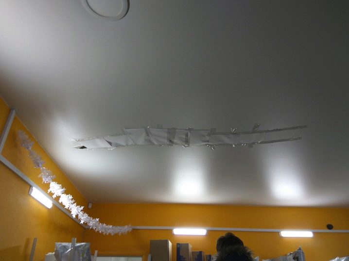 يجب أن يكون مفهوما أن القماش القابل للتمدد هو طبقة رقيقة أو طبقة نسيج تالفة بشيء حاد. على سبيل المثال ، قد يكون هذا ركنًا من خزانة إذا قررت نقله إلى مكان جديد. إذا تمزق السقف بسبب الإهمال في الترتيب ، يمكن إزالة العيب بسهولة.. يجب أن يتم ذلك بعناية فائقة حتى لا تتلف القماش أكثر..