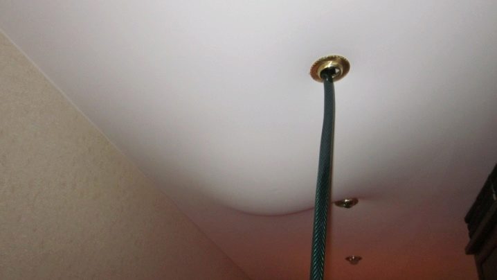 في حالة عدم وجود المصابيح والثريات ، يمكنك فصل حافة القماش ، ولكن في هذه الحالة سوف يعاني الجدار. بسبب الماء ، سوف تتبلل مواد تشطيب الأسطح ، على سبيل المثال ، ورق الحائط. لن يكون من الممكن إعادة اللوحة القماشية والمصابيح إلى مكانها إلا بعد أن تجف اللوحة تمامًا..