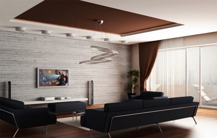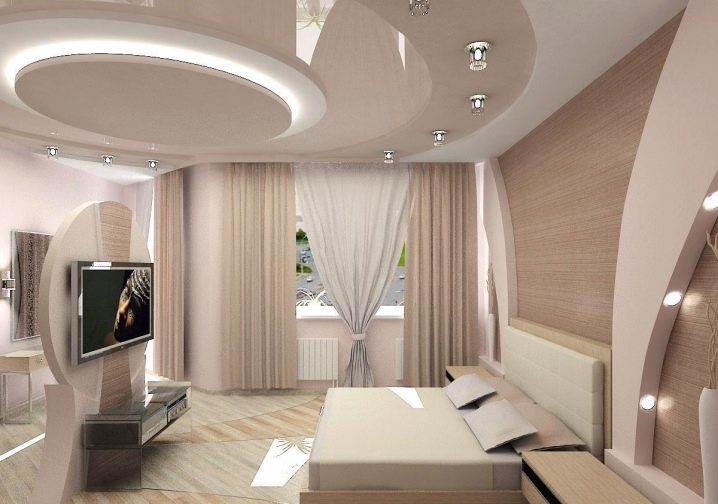 التفاصيل الداخلية القياسية والمشتركة هي الموجة الكلاسيكية على السقف. في هذا الإصدار ، يتم دمج الحوائط الجافة مع فيلم ، ويتم الحصول على خيار تصميم عصري للغاية..