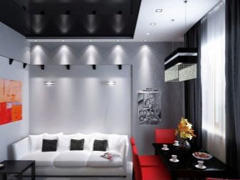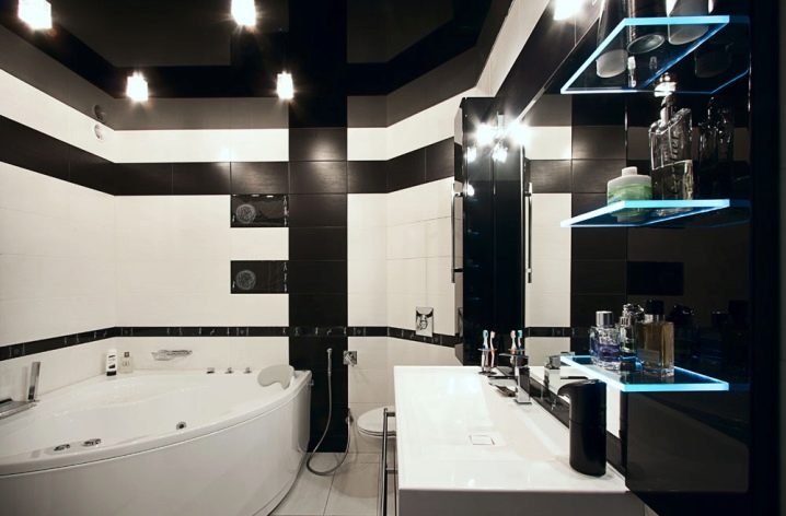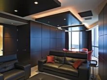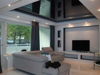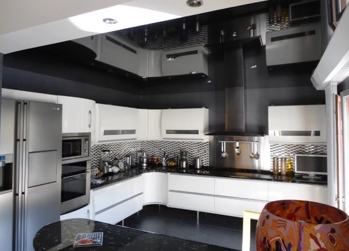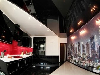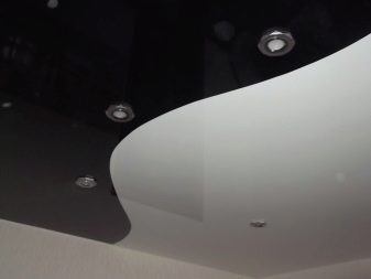 إذا كنت تريد استخدام اللون الأسود في الداخل ، فعليك أن تتذكر أن مثل هذا السقف يمكن أن يتسبب في حالة السماء “الساقطة”. يجدر اتخاذ خيار لصالح الانسجام. عند تثبيت سقف أبيض وأسود ، سيتعين عليك إخضاع الديكور في الغرفة لهذا المظهر. نتيجة لذلك ، يمكنك الحصول على تصميم مثير للاهتمام ومدهش للغاية..