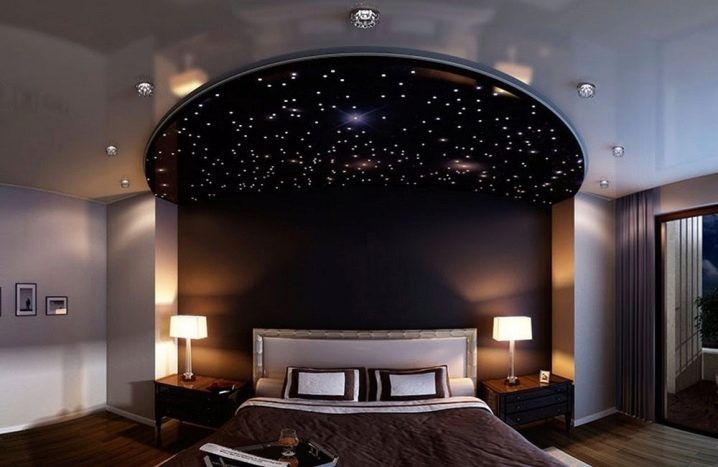 - غرفة نوم. بالنسبة لهذه الغرفة ، يختار الكثيرون كلاسيكيات هذا النوع – السماء المرصعة بالنجوم. يمكن الحصول على تأثير مذهل باستخدام سطح لامع مع النجوم المتلألئة. يمثل الأسود والأبيض الليل والنهار. إنها مناسبة جدًا لغرفة النوم..